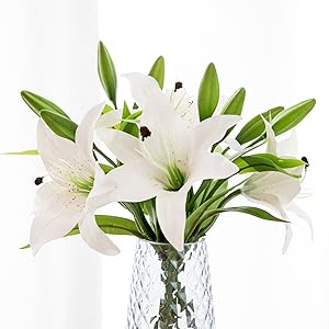 Amazon Com Barley Yue 7 Pcs White Lilies Artificial Flowers Suitable For Home Decorations Spring Decor White Home Kitchen